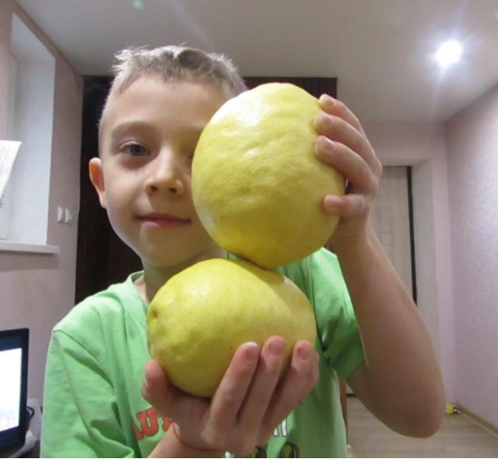 Лимон весом в килограмм — совсем не редкость на кроне этого цитруса, бывают и тяжелее! При обильном цветении лимонов-гигантов завязывается мало. Чаще всего даже на молодом деревце можно увидеть от 4-х до 6-ти плодов. В условиях хорошей оранжереи количество плодов на дереве может возрасти многократно. У фруктов толстая, бугристая кожура, а форма слегка смахивает то ли на грушу, то ли на яйцо, перевёрнутое острым концом вверх. Плод наполнен соком, приятным на вкус, напоминающим лимонный, но почти лишённый характерной кислоты.