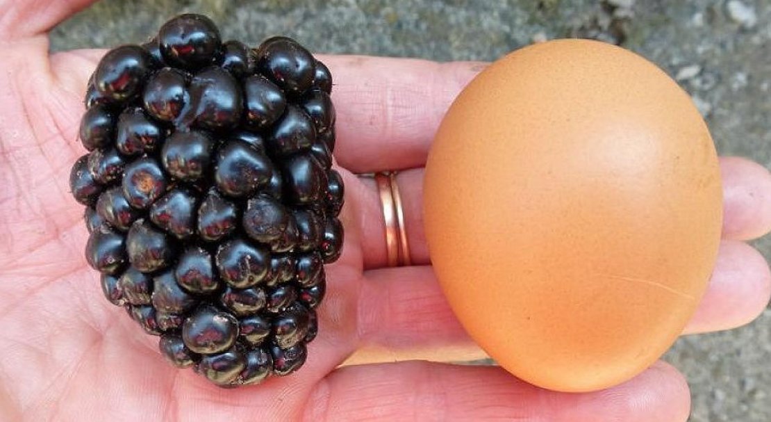 Ежевика Киова Ягоды крупнейших размеров, насыщенно-чёрного оттенка с типичным ежевичным глянцем. Средняя масса одного плода колеблется у отметки в 25 граммов, а рекордсмены достигают и 35 граммов. Форма ягоды коническая, несколько округлая. Киова по вкусу сбалансирована между сладостью и кислотой, имеет плотную и сочную структуру. Семянки средних размеров. Аромат глубокий и имеет нотки лесных ягод. Урожайность Киова на высоком уровне