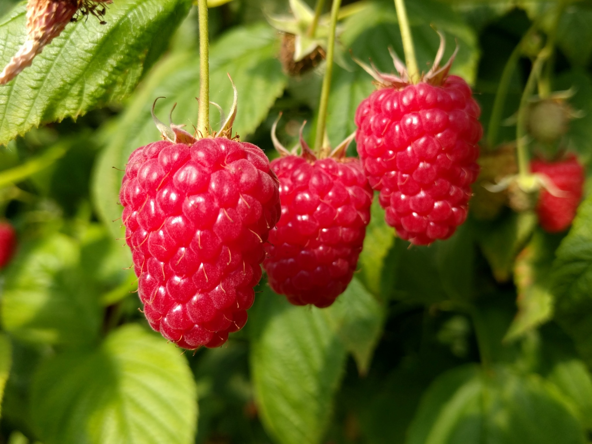 Ягоды красивые, яркие, светло-красного цвета с глянцевым блеском, слабоопушенные. Костянки одномерные, плотно сцепленные друг с другом. В них содержится небольшое количество мелких семян. Ягоды легко снимаются при сборе, не крошатся и не текут. Плоды малины крупные и очень крупные, мясистые, выровненные и однородные, весом 6−8 грамм, но могут наливаться до 10−12 грамм. Ягоды средней длиной 3 см, а шириной 1,9−2,0 см. Они широкие, удлинённо-конической формы. Ягоды крепкие и плотные. Кожица тонкая, упругая, стойкая к механическим повреждениям. Плоды обладают высокими товарными характеристиками. Ягоды вкусные. Мякоть сочная, с насыщенным, густым малиновым ароматом.